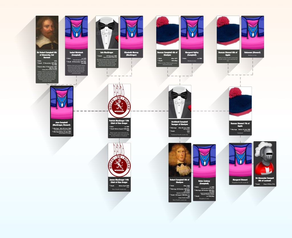 If we go back to the great great grandfather of the first Marquis of Breadalbane, Robert Campbell ninth of Glenorchy, we find that his daughter Jean married Duncan Stewart, seventh of Appin. Could she be the Breadablane-Appin connection who Donald MacLeod was referring to? Interestingly she was married three times and was the mother of Robert Campbell of Glenlyon – commander at the Massacre of Glencoe – and niece-in-law of Alasdair MacGregor. 11th Chief of Clan Gregor, who lead the clan at the battle of Glen Fruin which took place in the McAusland homeland.