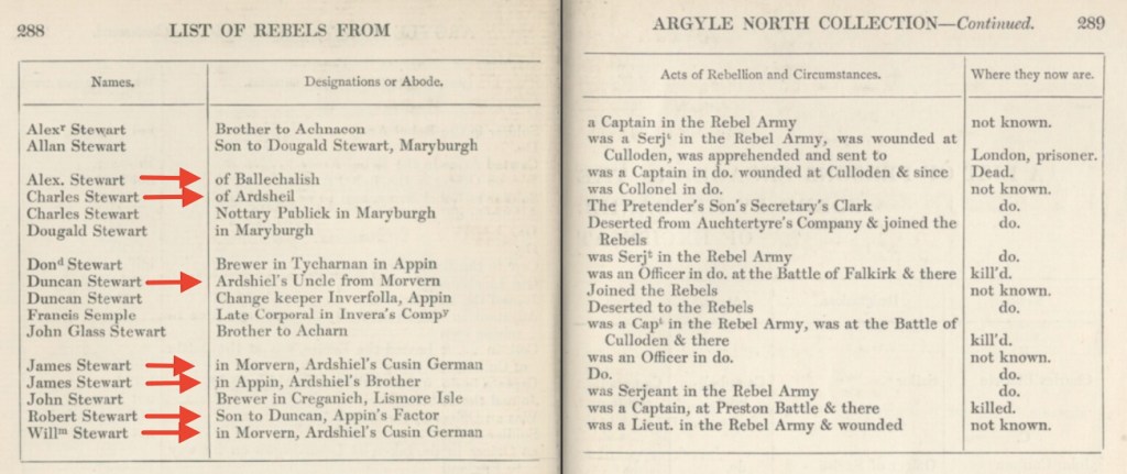 Alexander Stewart, 4th of Ballachulish, father of Isabella Stewart, served as a captain in the Appin Regiment in 1745-46 as did many others in the clan.