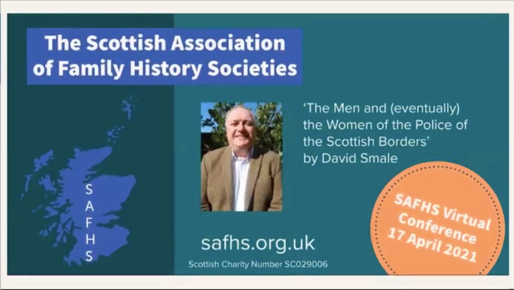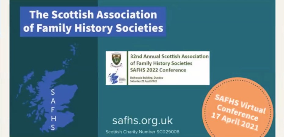 The 17 April 2021 SAFHS conference was hosted online by Emma and Graham Maxwell of Scottish Indexes.