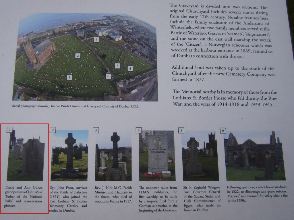 John Muir’s Birthplace is a four-story stone house in Dunbar, East Lothian, Scotland. His parents were Daniel Muir and Ann Gilrye. His maternal grandfather was an elder of Dunbar Kirk session.