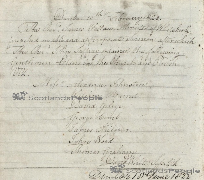 Dunbar Kirk Session Records (CH2/647/6) by courtesy of the National Records of Scotland and the Church of Scotland.
