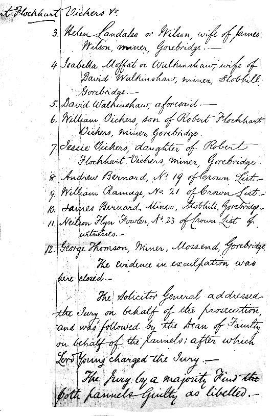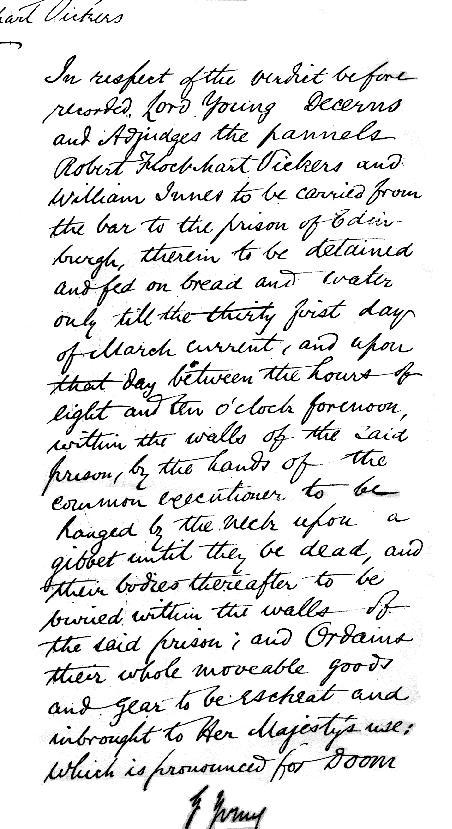 The verdict, by a majority of nine to six, was that Robert Flockhart Vickers and William Innes were Guilty and the Sentence was Death. They were both interned at Calton Prison in Edinburgh where they were executed on 31st March 1884.