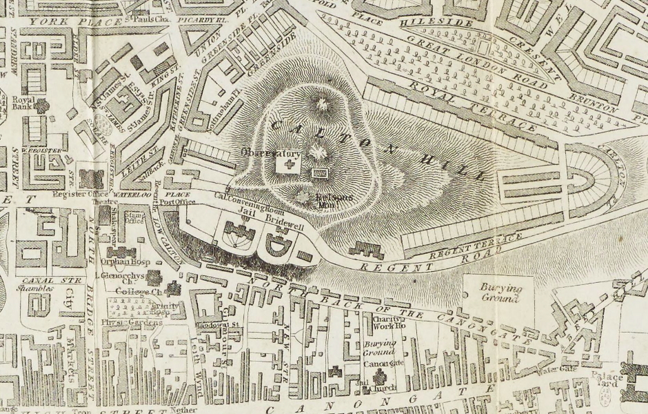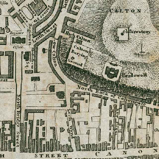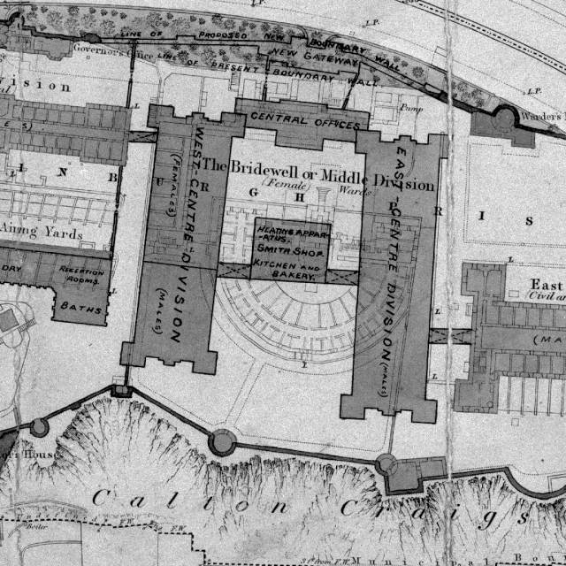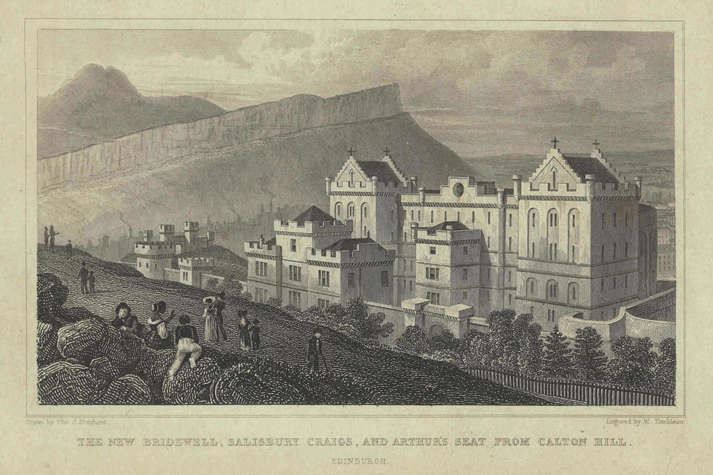 Calton Prison, also known as Calton Jail or The Bridewell was the largest prison in Scotland. This new jail for Edinburgh was designed by the renowned Scottish architect Robert Adam (1728-1792), built between 1791 and 1796 on Calton Hill on a crag overlooking the city, and opened in 1817.