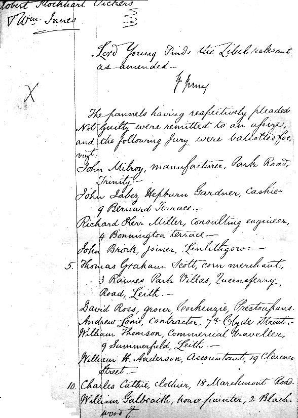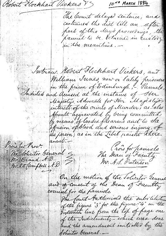 Robert Flockhart Vickers and William Innes were tried on 10th March 1884 at the High Court in Edinburgh and being found guilty by a majority verdict, they were executed by hanging in Calton Prison, Edinburgh on the 31st of March, 1884.