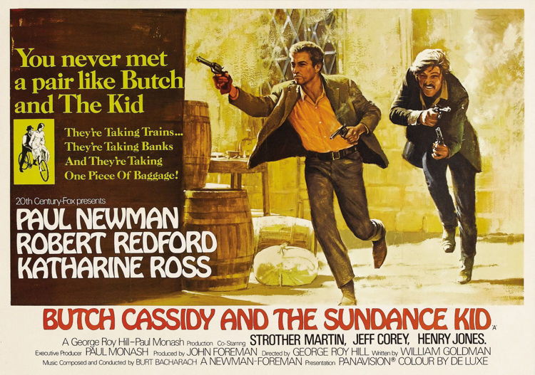 Butch Cassidy and the Sundance Kid is a 1969 American Western film directed by George Roy Hill and written by William Goldman. Based loosely on fact, the film tells the story of Wild West outlaws Robert LeRoy Parker, known as Butch Cassidy (Paul Newman), and his partner Harry Longabaugh, the “Sundance Kid” (Robert Redford), who are on the run from a crack US posse after a string of train robberies. The pair and Sundance’s lover, Etta Place (Katharine Ross), flee to Bolivia in search of a more successful criminal career.