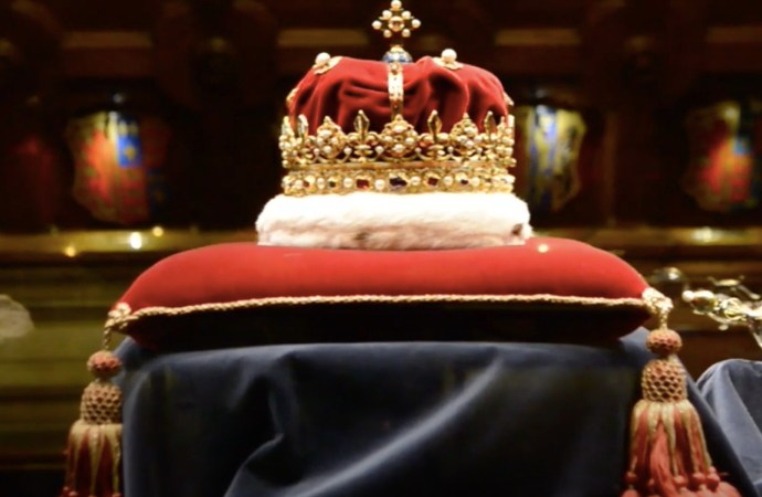 The Ruby Ring was probably used at the English coronations of Charles I and Charles II, and certainly that of James (known in England as James II). It has a large ruby etched with a St George’s Cross and bordered by 26 diamonds applied in the 19th century.