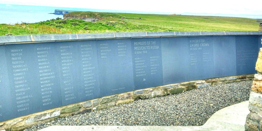 In fact, only 12 men survived when the Hampshire was sunk and no less than 737 men perished in terrible conditions. Orkney Heritage Society have restored the Kitchener Memorial and added an arc-shaped HMS Hampshire commemorative wall which is engraved with the names of all 737 victims of the Hampshire disaster.