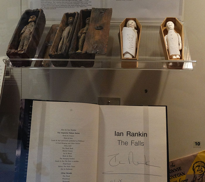 There are actually two versions of the Arthur Seat coffins. The surviving originals can be found in the Industry and Empire Gallery while in the Scotland a Changing Nation gallery on Level 6 there is an exibit of the larger coffins used in the Rebus Episiode The Falls.