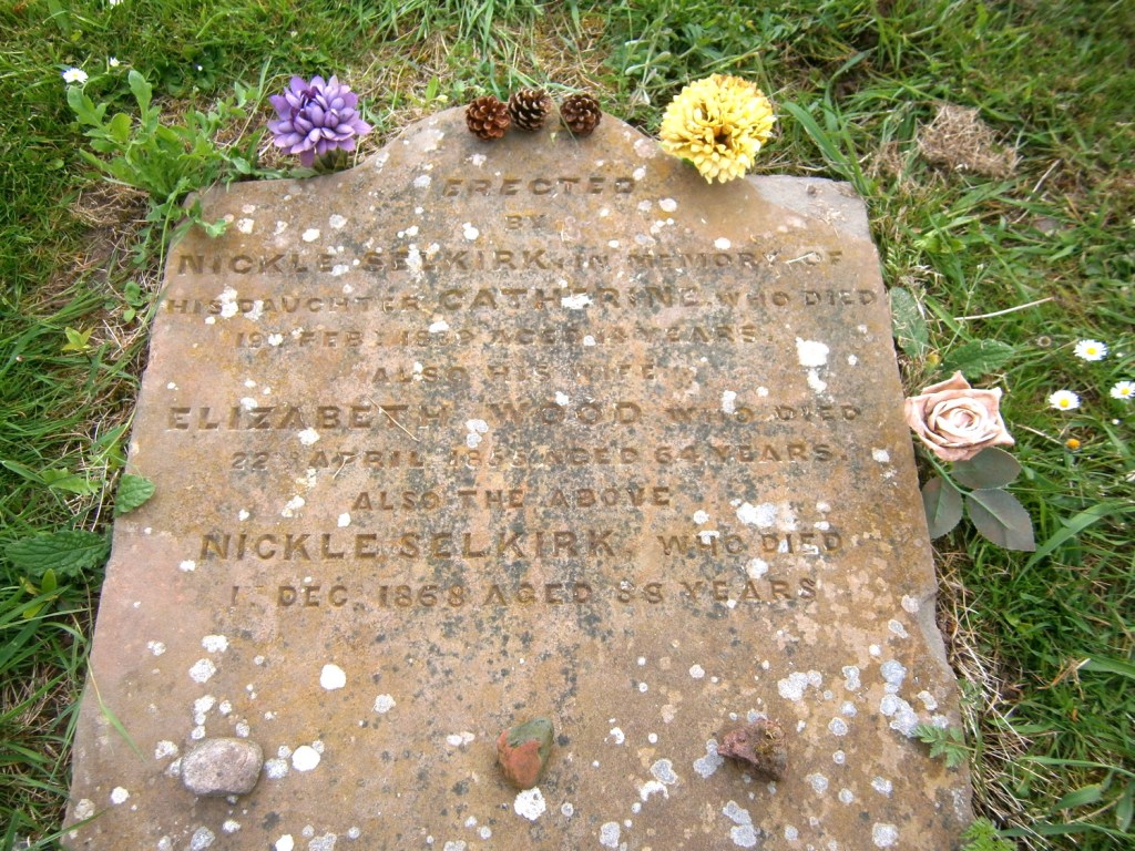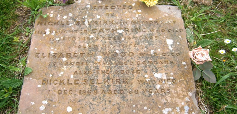 On 01 December 1868, Nicol Selkirk died in the village of Spott, in Spott parish, where he was buried beside his wife. He was recorded as being aged 86 years old, a ploughman and the widower of Elizabeth Wood, and the son of Robert Selkirk, ploughman and Catherine McKinlay. The cause of death was recorded as age and infirmity, as certified by James Dunlop F.R.C.S.E., Dunbar. The death was registered by his eldest son, Robert Selkirk.