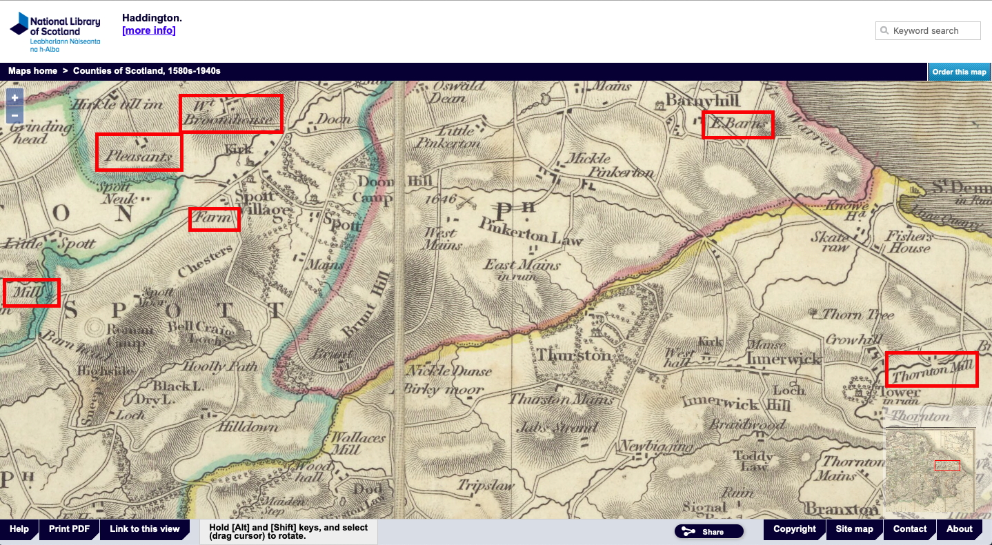 By 08 September 1823 when their daughter Margaret was baptised, they were living at The Pleasance (then known as Pleasants), in the Church of Scotland’s parish of Spott. They were still living at the Pleasance on 24 March 1833 when their tenth and final known child, Elizabeth was born.