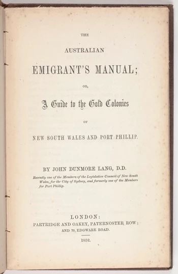 Despite their eccentricity, Lang’s works were influential in promoting Australia, but his practical schemes for immigration were usually fiascos owing to his lack of business sense. After 1851, in any case, immigration to Australia boomed due to the Gold Rush and had no need of promotion.