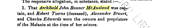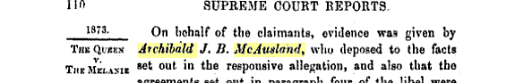 This was a suit instituted by the Crown, in the Vice-Admirality Court of New South Wales, at the instance of Captain John Moresby, commanding HMS Basilisk, against the schooner Melanie, her tackle, apparel, and furniture – Archibald John Bonnar McAusland having been the master of such vessel, and Messrs Robert Towns (now deceased), Alexander Stuart, and Charles Edwards, the owners. The vessel had been seized by Captain Moresby for carrying “native labourers not being passengers,” contrary to the provisions of the Kidnapping Act of 1872. The facts have already been reported in a previous issue.