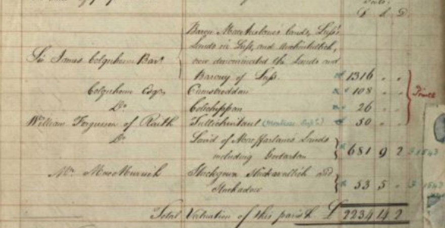 Baron McAuslan in the land tax information from the parish of Luss in 1782. Records Historical Tax Rolls Land tax rolls 1645-1831 Land tax rolls for Dunbartonshire, volume 01 E106/11/1/7
