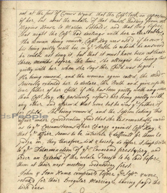 Once the Kirk Session minutes became available on ScotlandsPeople I looked for any entries pertaining the incident. I was surprised to see that the accused was Capt. James Hay Br (brother) to Mr John Hay of Belton as I had been looking into that very family.