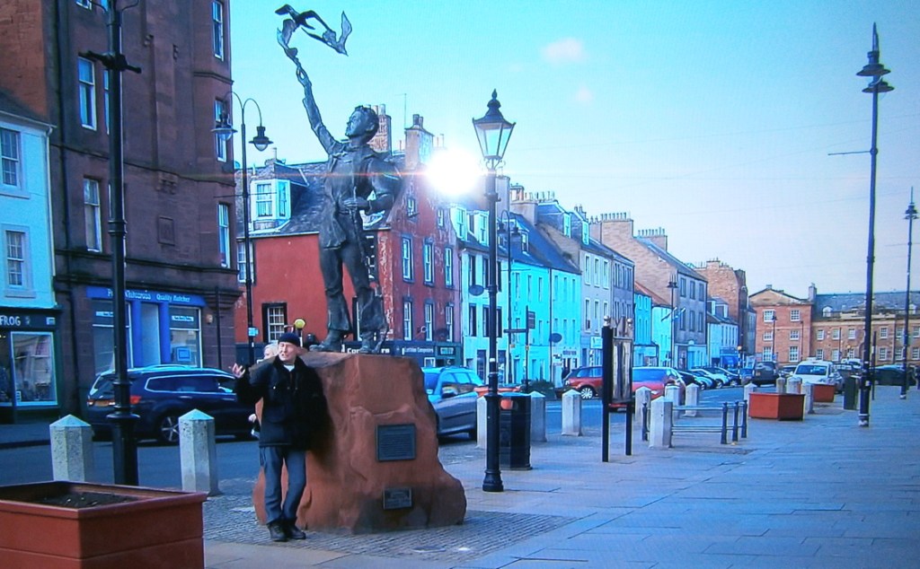 Famous faces can still be seen visiting Dunbar: David Hayman was in the High Street by John Muir’s Statue for an episode of Hayman’s Way, his tribute to Weir’s Way, in 2015.
