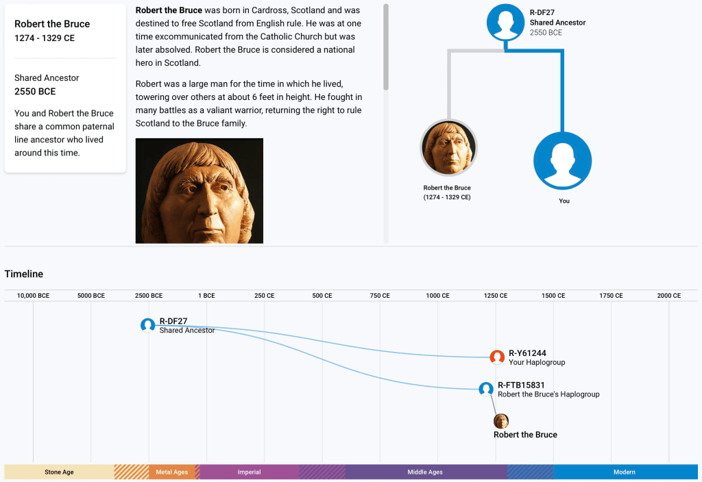 Meanwhile, amongst our notable connections, we share an MRCA with King Robert the Bruce circa 2550 BCE;
