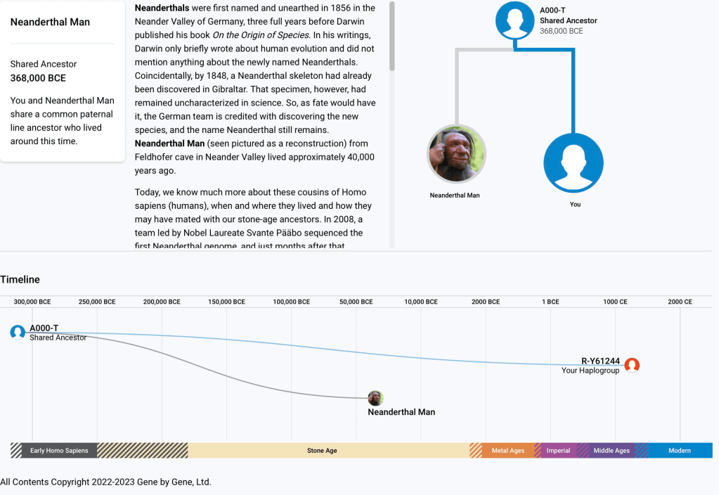 The Y chromosome is passed from father to son remaining mostly unaltered across generations, except for small traceable changes in DNA. By tracking these changes, FamilyTree DNA have constructed a family tree of humankind where all male lineages trace back to a single common ancestor who lived hundreds of thousands of years ago. The human tree allows us to explore lineages through time and place and to uncover the modern history of our direct paternal surname line and the ancient history of our shared ancestors.
