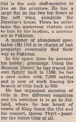 Meanwhile the late Mr Geoffrey Old, of the British Museum, had an even more exotic theory that his Old line might be descended from the Danish King Gorm the Old.