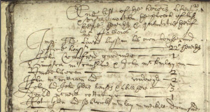 The Hearth tax records for Dunbartonshire contains a list of householders liable for hearth tax in Dunbartonshire in 1694. Although some 17 years before the letter to Oliver McCausland of Strabane was written, these records are useful documents as we have found a total of 33 McAuslands listed, 30 of them by name. Of these, 25 were in the parish of Row, six in Luss, one in Cardross and one in Rosneath.