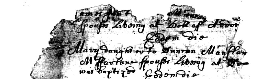 - Mary’s mother was a McFarlane, but her Christian name is missing. However, on 18th June 1688, a Duncan McAuslane and Christine McFarlane had a daughter baptised named Christine. So it is likely that Mary’s mother was that same Christine McFarlane.