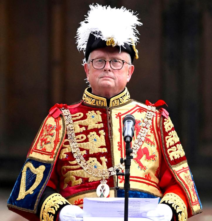 The Lord Lyon King of Arms, Joseph Morrow attending the proclamation of the new King, King Charles III, from the Esplanade of Edinburgh Castle, in Edinburgh, on September 11, 2022. (Photo by Neil Hanna / AFP)