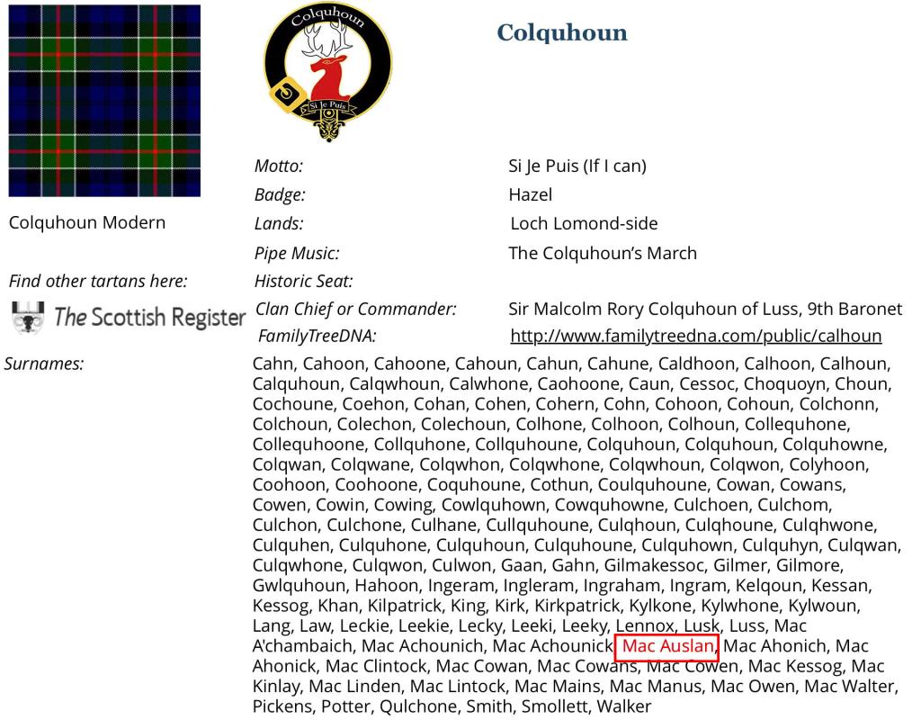 McAusland as a Sept of Clan Colquhoun?