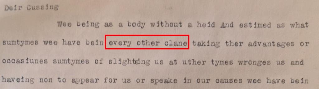 The conclusion is crystal clear. In 1711, the senior McAuslands had no doubt whatsoever that they were a “clane” in their own right, rather than a mere sept.