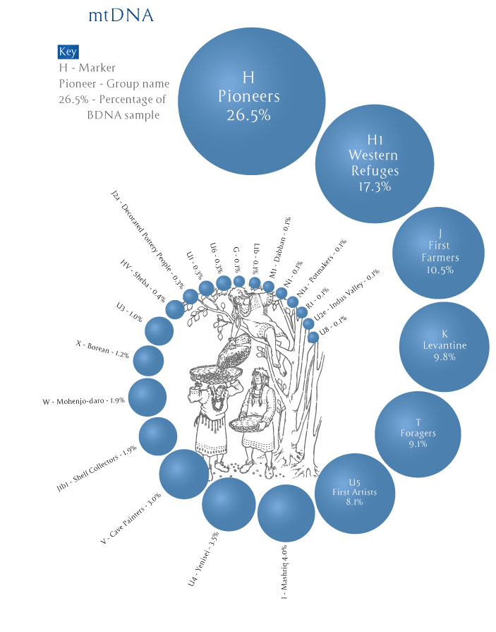 Oxford Ancestors was a commercial genetic genealogy company launched in April 2000 by Professor Bryan Sykes, a Professor of Human Genetics at the University of Oxford. Oxford Ancestors was set up to meet the anticipated demand for mitochondrial DNA (mtDNA) tests from members of the public in response to the publication of Sykes’ book The Seven Daughters of Eve (published spring 2001) which claimed to show that almost everyone in Europe was descended on the maternal line from one of seven female ancestors. The “daughters” or clans correspond to the most common mitochondrial DNA haplogroups in Europe. For a list of the clan mother names used by Oxford Ancestors for the mtDNA haplogroups see the ISOGG Wiki list Oxford Ancestors haplogroup nicknames.