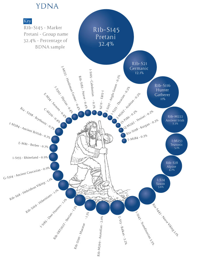 Professor Sykes was one of the first researchers to establish a link between the Y chromosome and surnames. His paper “Surnames and the Y chromosome” suggested that the surname Sykes had a single surname founder, even though written sources had predicted multiple origins. A Y chromosome test was also offered to the public on the company’s launch. Oxford Ancestors similarly assign clan names to the Y-DNA haplogroups.