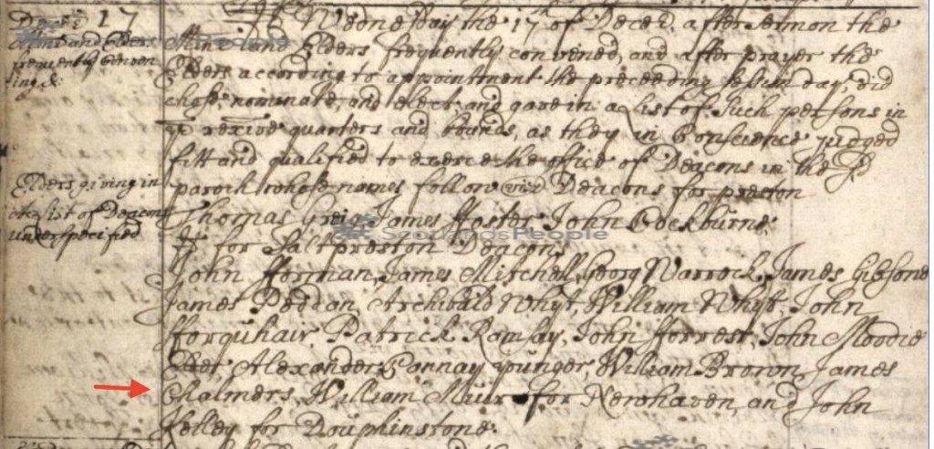 - James Pride, born 05 May 1715, baptised 08 May 1715, with witnesses James Cannie (Merchant & Elder of Saltpreston Kirk) & Wm Selkirk (believed to be his maternal uncle). [13]