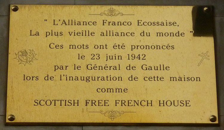 Scotland had been a friend and ally of France for centuries. In 1942, while in Edinburgh, General de Gaule described the alliance between Scotland and France as “the oldest alliance in the world” and added: In every combat where for five centuries the destiny of France was at stake, there were always men of Scotland to fight side by side with men of France, and what Frenchmen feel is that no people has ever been more generous than yours with its friendship. More recently, in 2011 an academic suggested that the alliance may never have formally ended. [10]