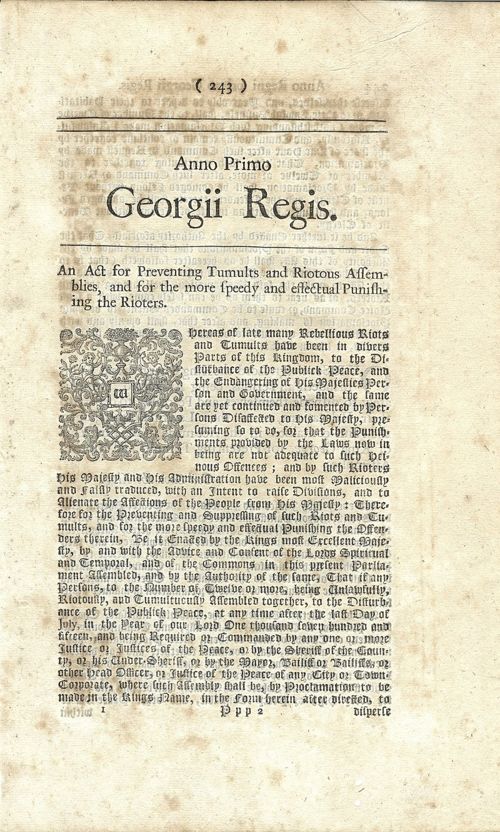 John Cadell then proceeded to read the Riot Act. [1] This proclamation ordered the dispersal of any group of more than twelve people who were “unlawfully, riotously, and tumultuously assembled together” and gave them one hour to disperse, otherwise they would be guilty of a felony punishable by death. [14]